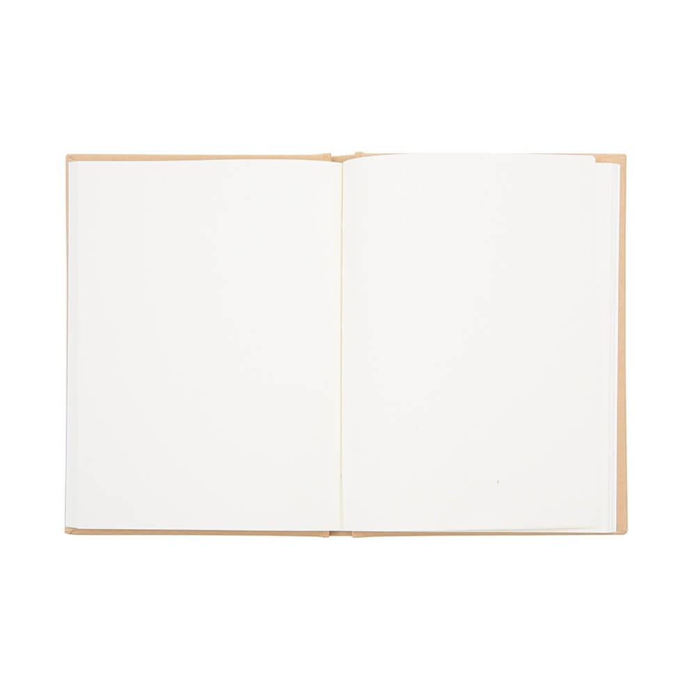 Caderneta ecológica, material em kraft. Frente e verso liso com fita elástica para fechar. Contém aproximadamente 80 folhas amareladas sem pauta.