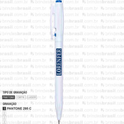 Caneta plástica com carga esferográfica azul e acionamento por clique. OBS.: PEDIDOS MÍNIMO DE 50 PEÇAS!