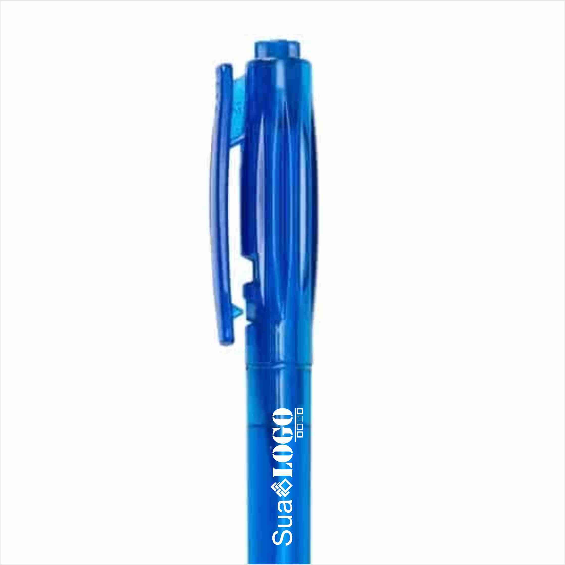 Caneta plástica translúcida com carga esferográfica azul e acionamento por clique. OBS.: PEDIDOS MÍNIMO DE 50 PEÇAS!